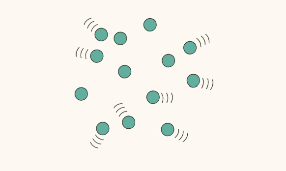 One atom vibrating hits another which vibrates and passes its energy onto the next atom … and so on.