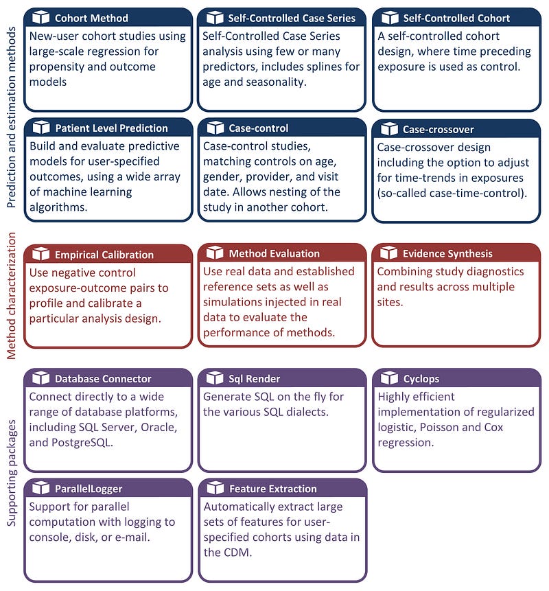 A list of open-source software tools have been built by the Observational Health Data Sciences and Informatics (OHDSI) community to enable various standardised analyses from participating organisations or data partners that have adopted OMOP CDM. Examples of these tools include: