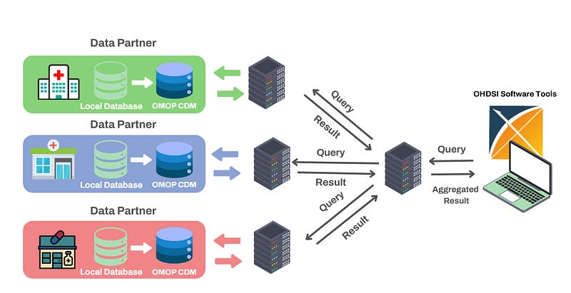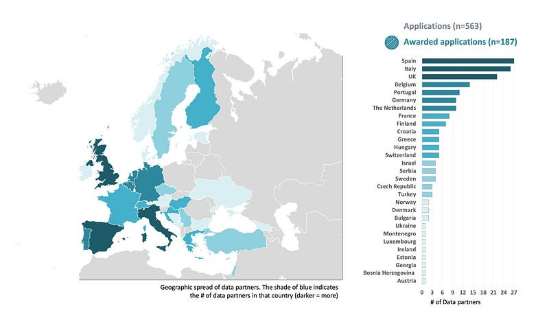 This federated architecture has been initiated by EHDEN (https://www.ehden.eu/datapartners/) which currently have 187 data partners from 29 different countries that are mapping their data to the OMOP common data model: